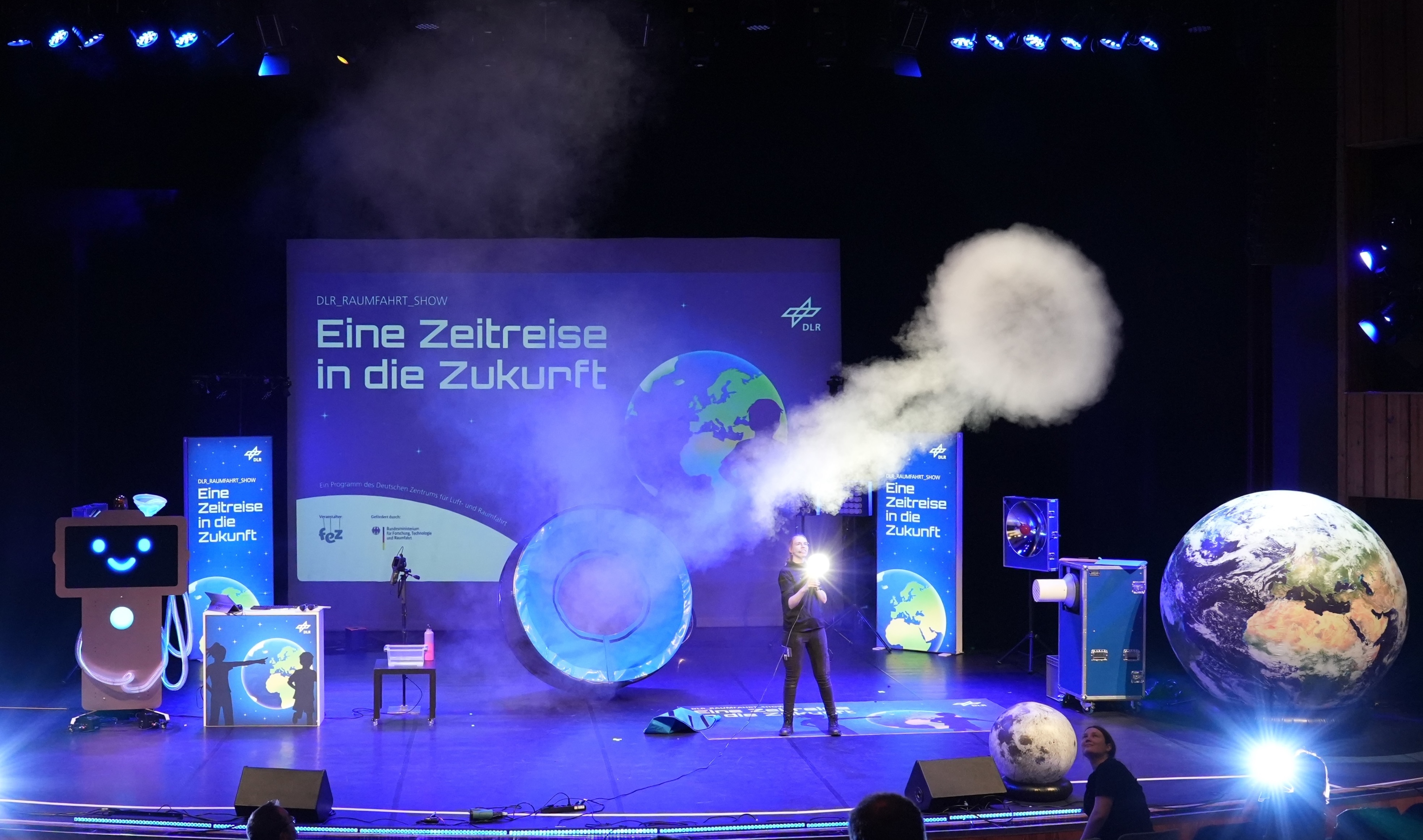 Auf der Bühne begeistert die „DLR_Raumfahrt_Show" mit verblüffenden Experimenten