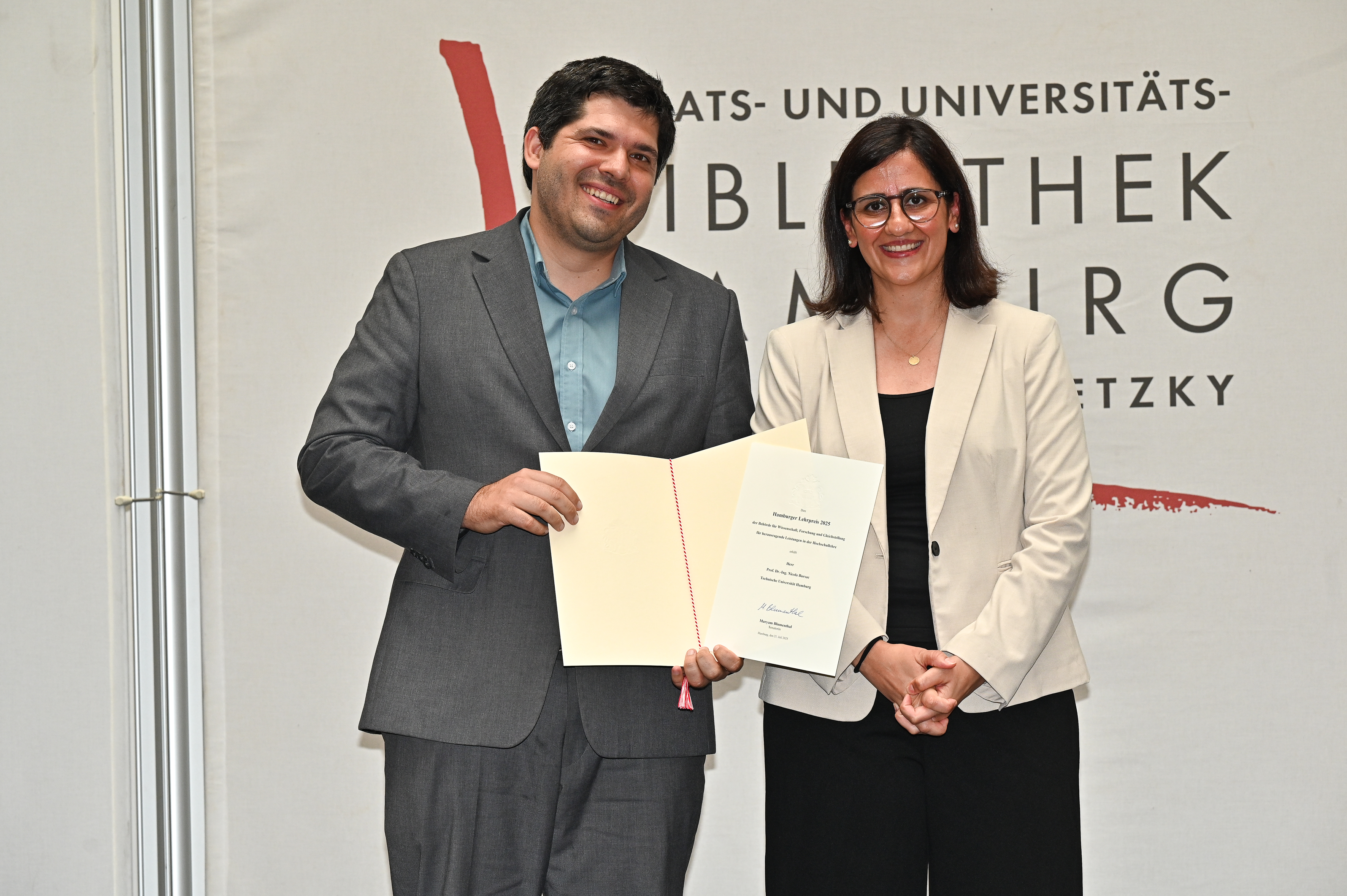 Wie geht gute Lehre? Von der Verbindung zwischen Theorie und Praxis über Interaktion und Interdisziplinarität bis zu individueller Betreuung und gemeinsamen Lernerfolgen: 16 Dozierende der sechs staatlichen Hamburger Hochschulen haben innovative und begeisternde Antworten darauf gefunden. Dafür wurden sie heute im Namen der Hansestadt Hamburg mit dem Hamburger Lehrpreis ausgezeichnet. Im Rahmen eines feierlichen Senatsempfangs im Lichthof Staats- und Universitätsbibliothek Hamburg Carl von Ossietzky überreichte Wissenschaftssenatorin Maryam Blumenthal den mit jeweils 10.000 dotierten Preis. Vorgeschlagen wurden die Lehrenden von der Hamburger Studierendenschaft.