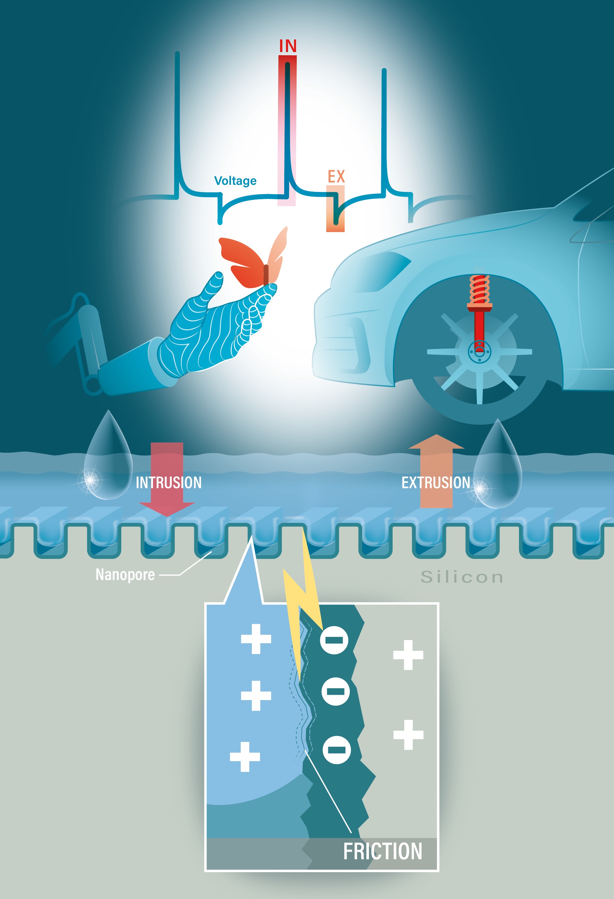 A European research team involving Hamburg University of Technology (TUHH) and Deutsches Elektronen-Synchrotron DESY has developed a novel way for converting mechanical energy into electricity – by using water confined in nanometre-sized pores of silicon as the active working fluid.